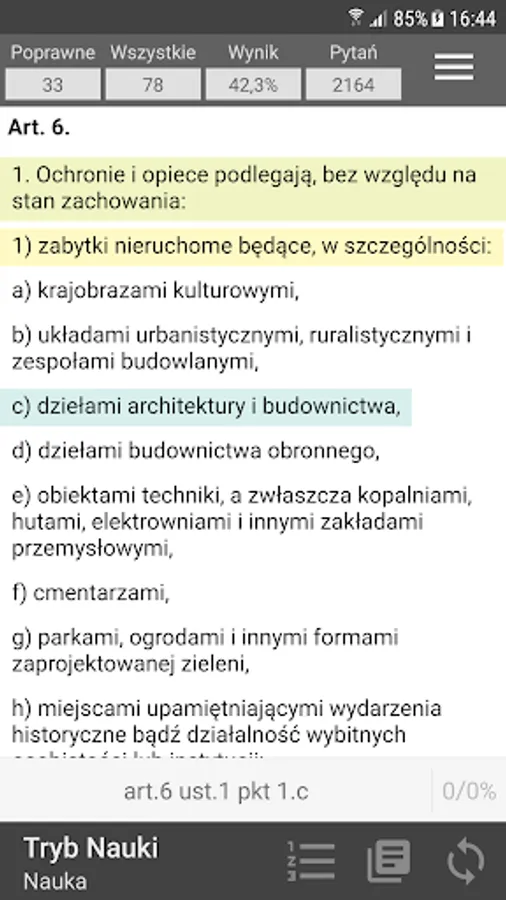 In this mode, questions from selected legal acts are randomly displayed, after selecting the answer, it is automatically verified and the result is displayed on the screen, which allows you to remember the correct answer visually. Thanks to the display of answers and clear visual messages, knowledge is acquired extremely quickly.