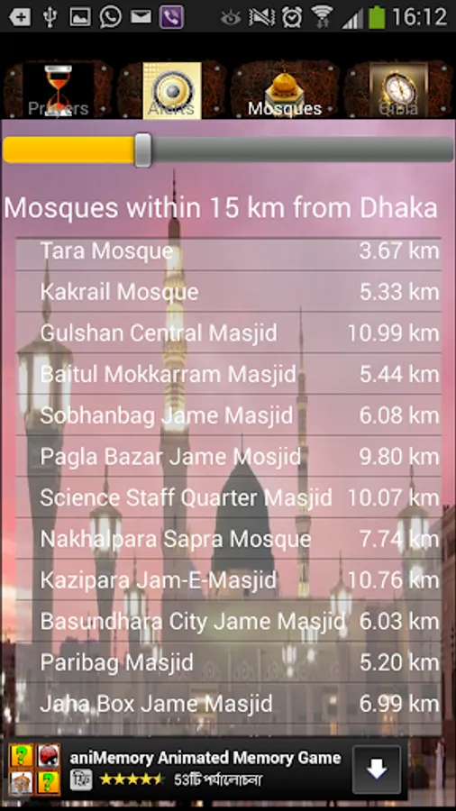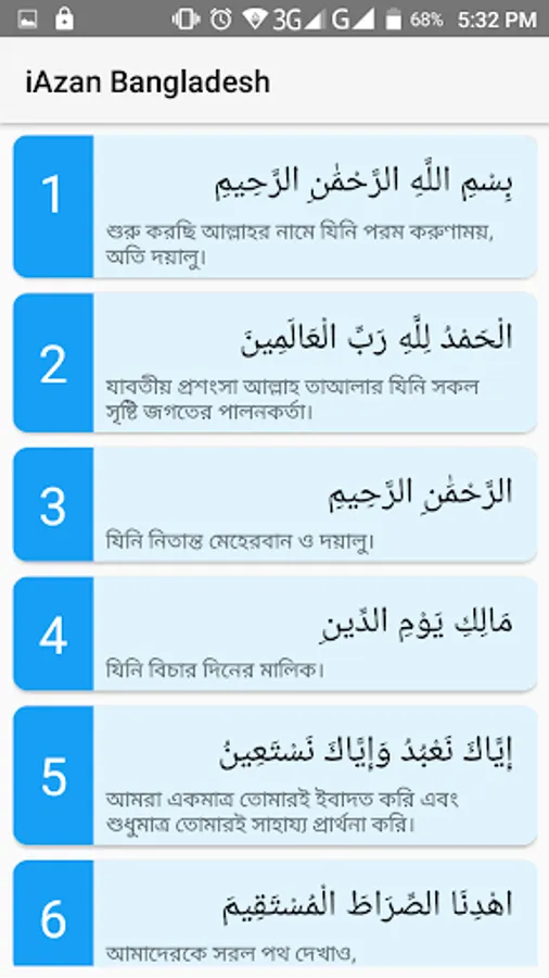 For our Muslim brothers and sisters, helping you know the Islamic Prayer (namaz / salat) times, Qiblah direction, Selection from various Azan/Athan alerts, whole Quran with Arabic recitations of every ayah and Bangla translations, and Mosque finder for Bangladesh.