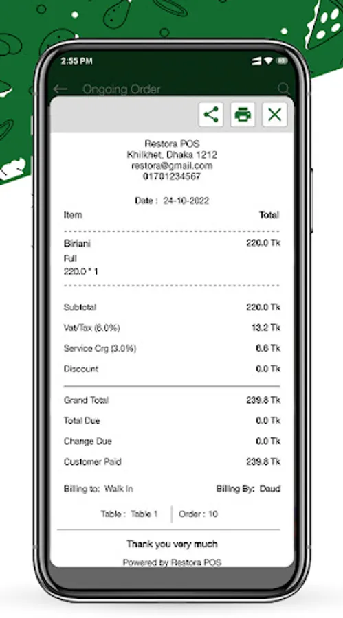 * Flexibility to merge with the premium services like online orders, cloud pos and other modules of RestoraPOS.