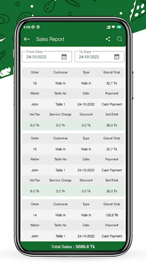 * Manage your restaurant's daily sales activities