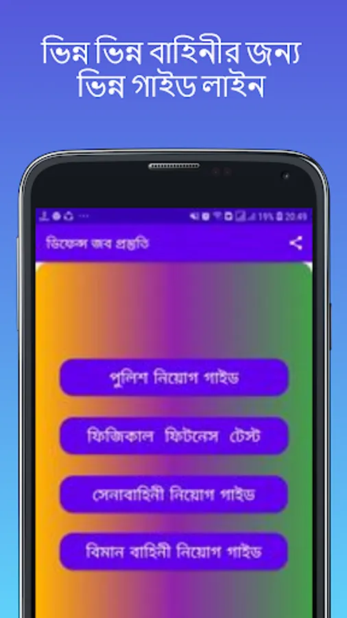 This app is for education purpose. In this app students can get proper instruction that how can they take preparation for their dream job to be a defense officer .Firstly, we focused the rules and eligibility criteria for becoming participant in dense job of Bangladesh.