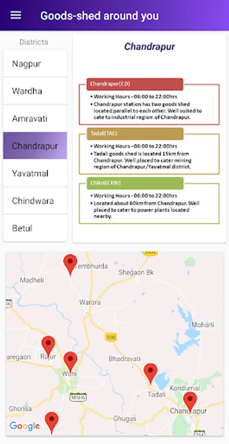3. Goods-shed near you - Shows district wise good sheds of Nagpur division, Central Railways in google map in reference to ones own current location.