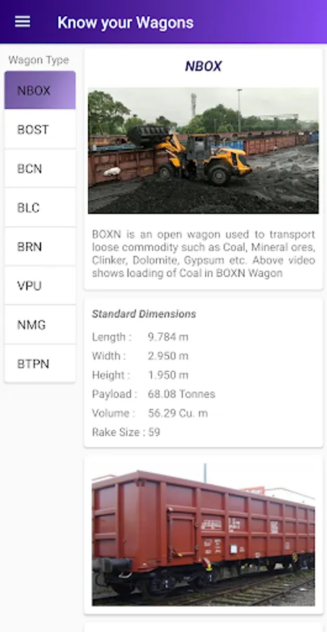 1. Know your wagons - Shows wagon types, their photo, video, capacity, dimension and standard rake size.
