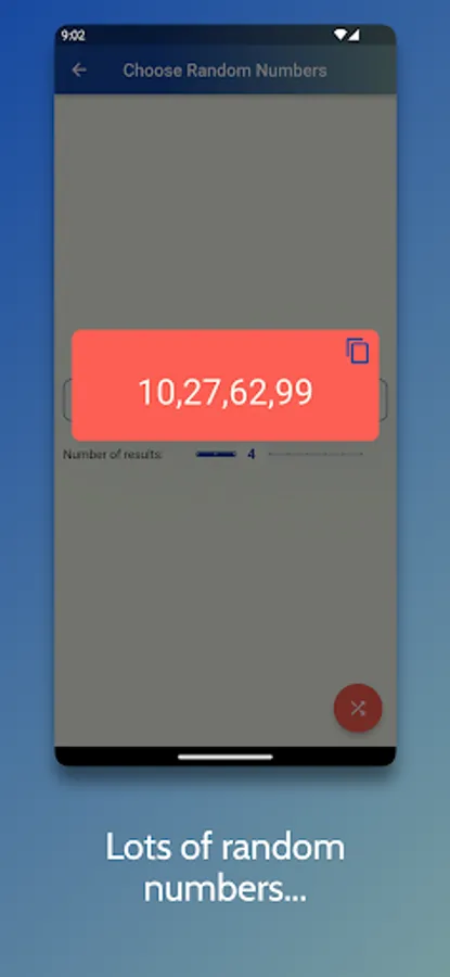 - Generate random numbers. You can select min and max numbers and also select how many number you want,