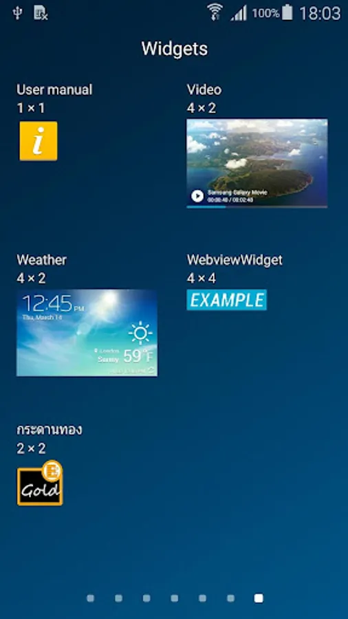 - Visit the Widget android app and widget applications are laid out on the screen.