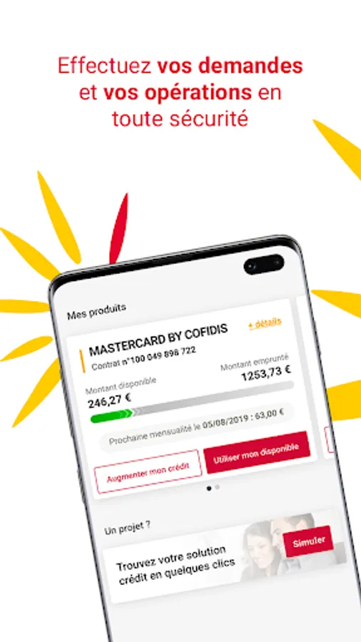 With the Cofidis mobile app, manage your customer account and perform all your operations, independently, directly from your smartphone.
