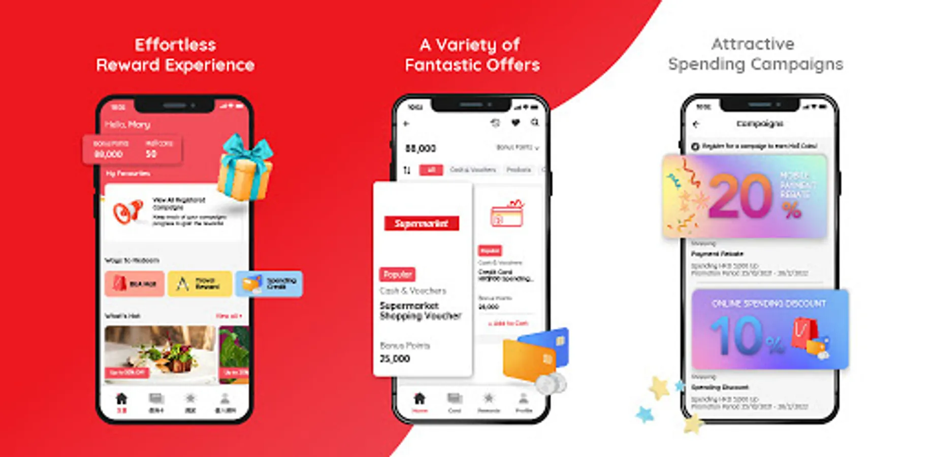 • Redeem your bonus points for various vouchers and Asia Miles (Available for the eligible BEA credit cards)