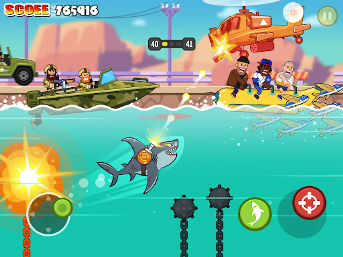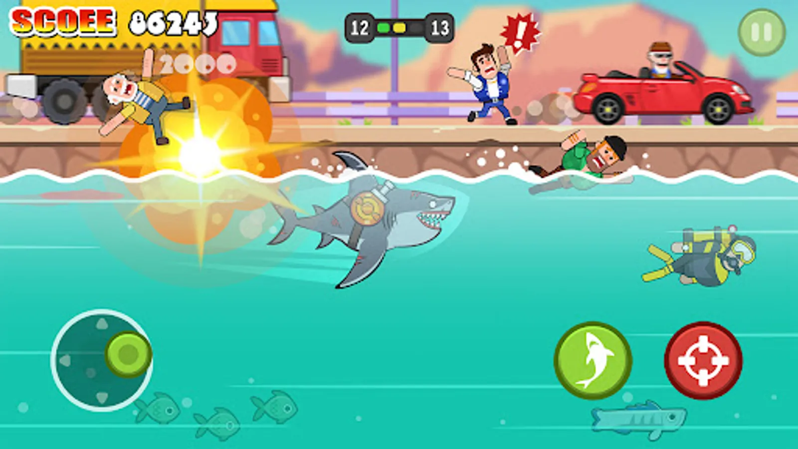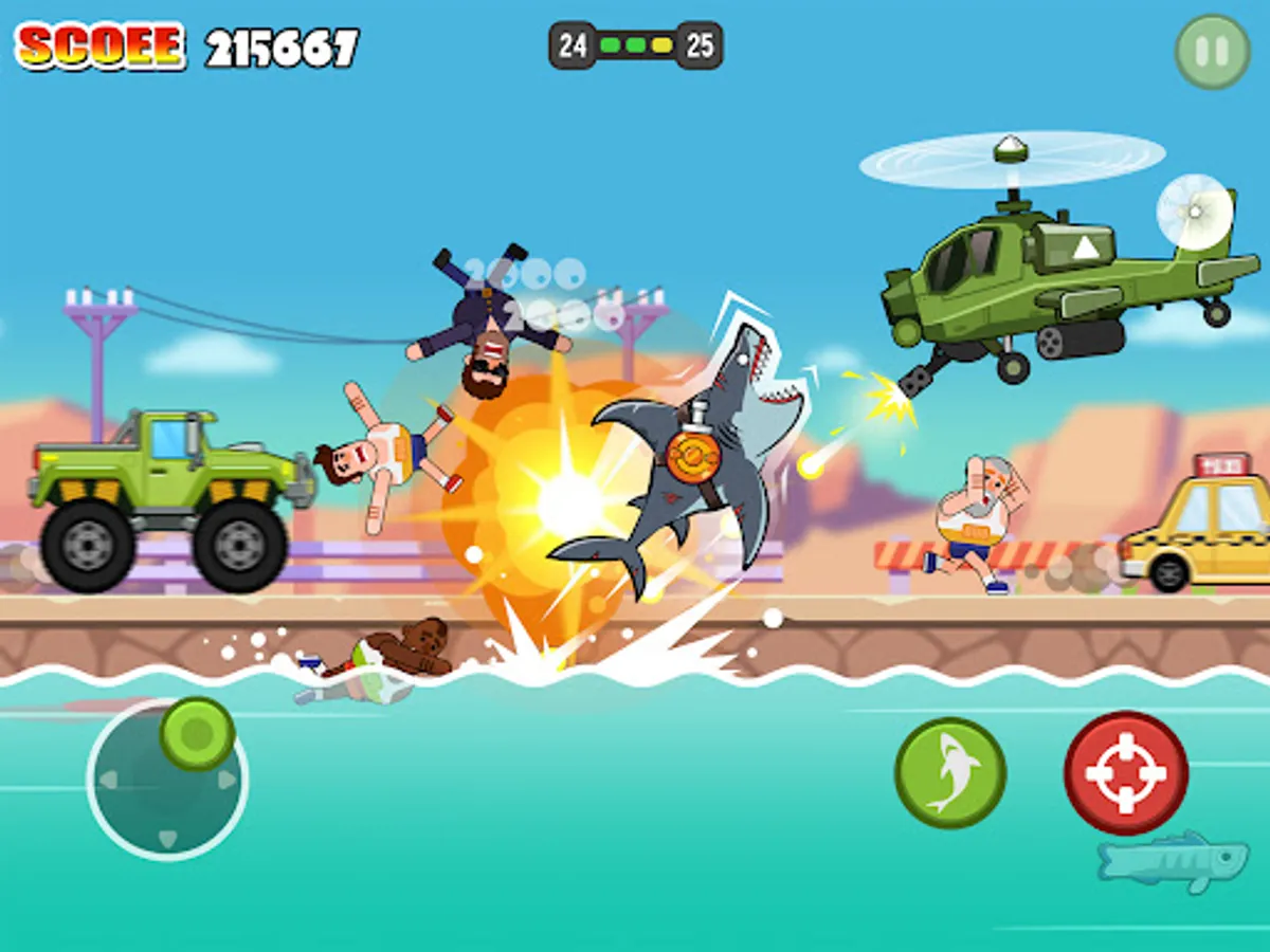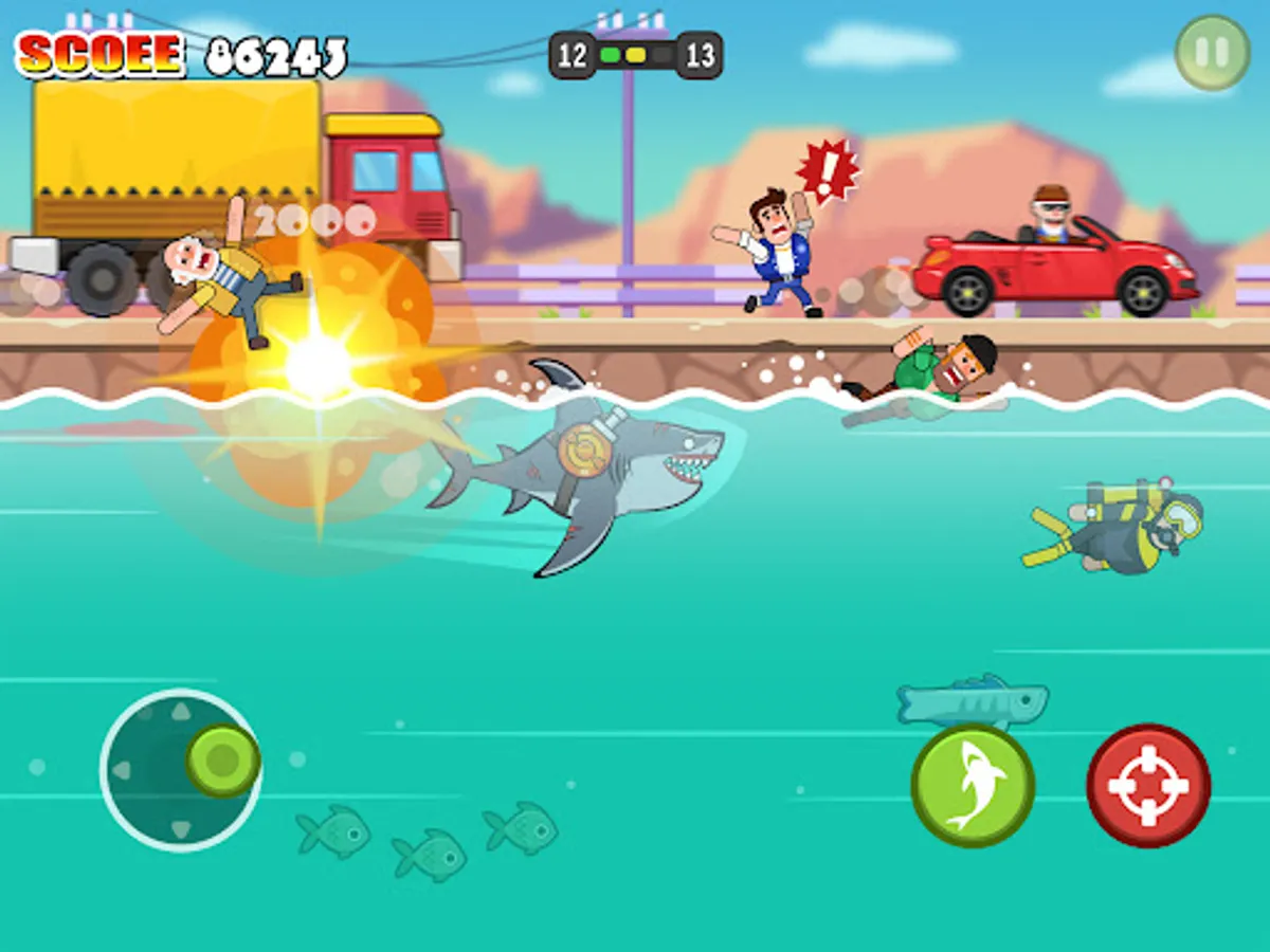 In this game, you will play a powerful shark and engage in fierce battles with humans. You will swim in the vast ocean, searching for prey and fighting against humans. By devouring creatures in the ocean, you can enhance your strength and health, making yourself even stronger. However, you also need to be careful of human counterattacks. They will send ships, divers, and weapons to confront you, and you need to use your speed and strength to evade attacks and counterattack them. In this exciting game, you will experience the power and wildness of being a shark, engaging in a thrilling battle with humans. Come and showcase your ability to rule the ocean and become the overlord!