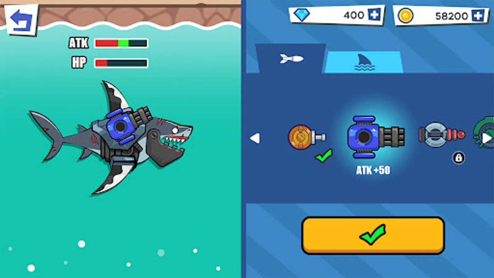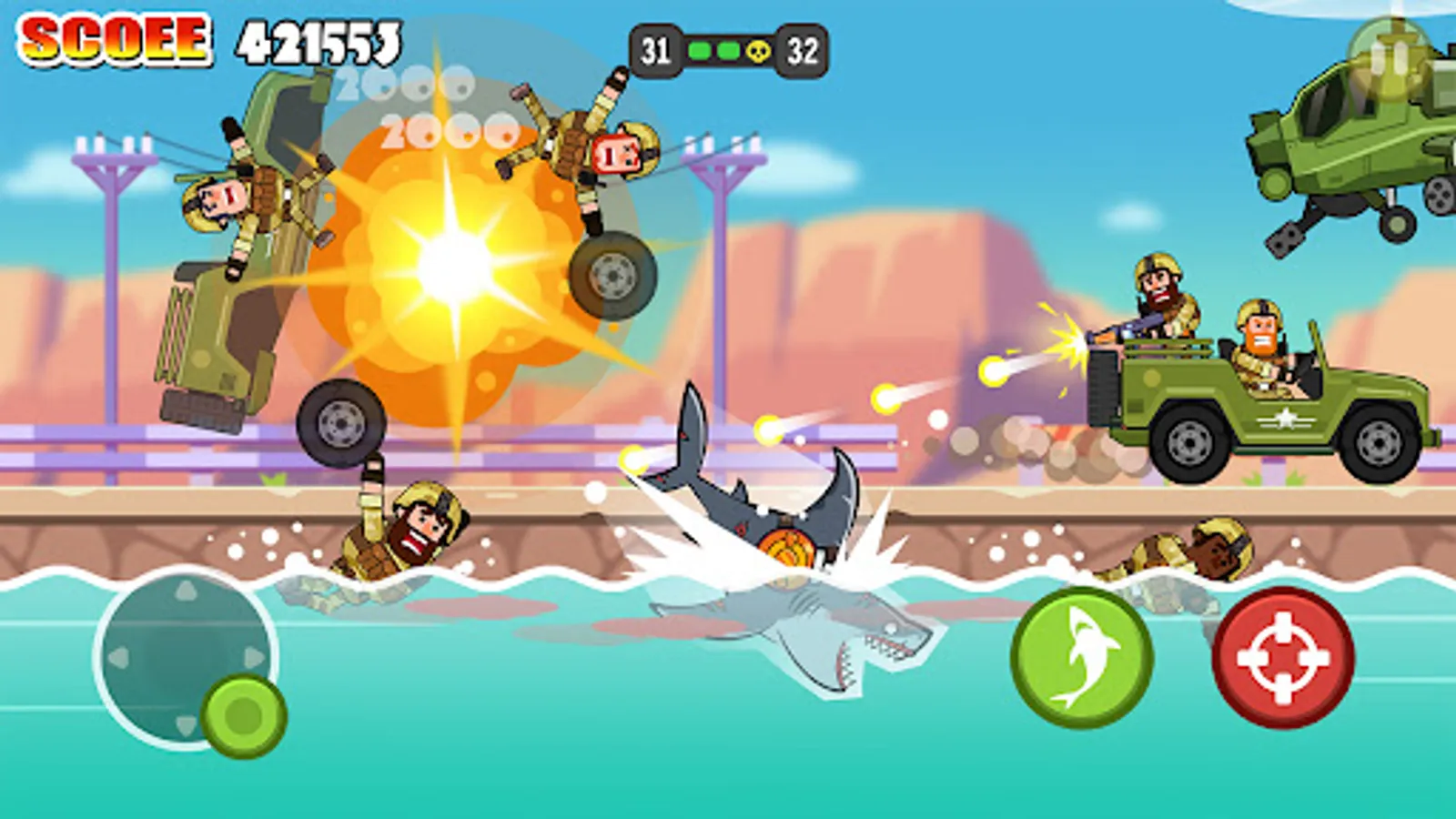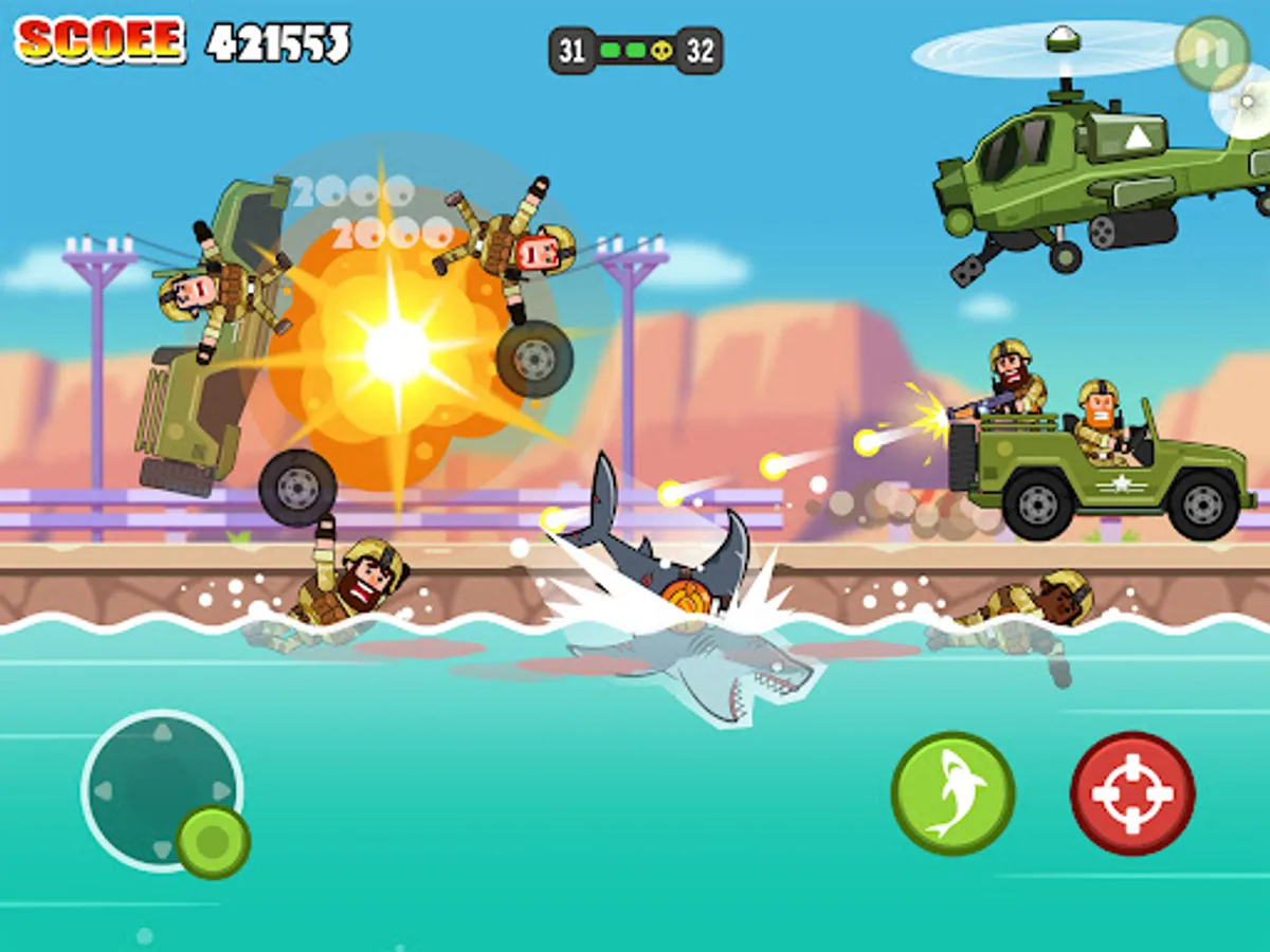 In this game, you will play a powerful shark and engage in fierce battles with humans. You will swim in the vast ocean, searching for prey and fighting against humans. By devouring creatures in the ocean, you can enhance your strength and health, making yourself even stronger. However, you also need to be careful of human counterattacks. They will send ships, divers, and weapons to confront you, and you need to use your speed and strength to evade attacks and counterattack them. In this exciting game, you will experience the power and wildness of being a shark, engaging in a thrilling battle with humans. Come and showcase your ability to rule the ocean and become the overlord!