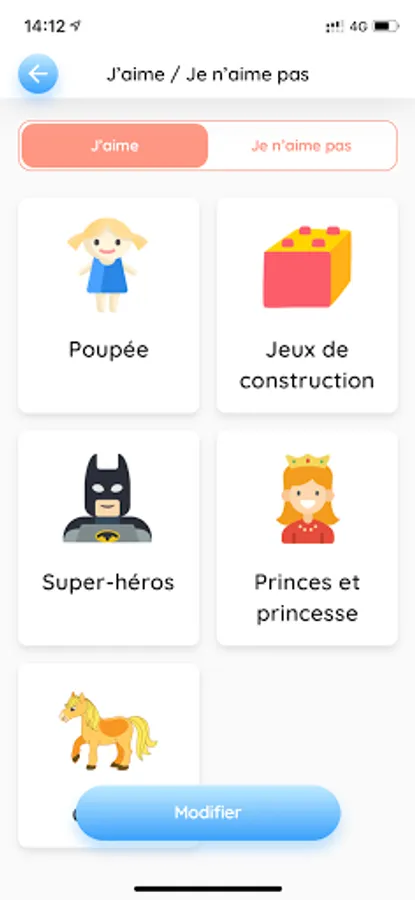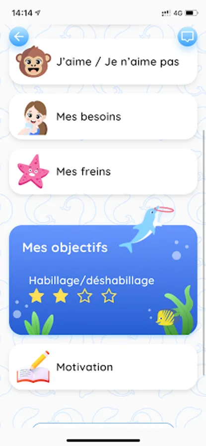 2.Create the child's profile: he can choose his avatar, the activities he likes, express his needs and difficulties