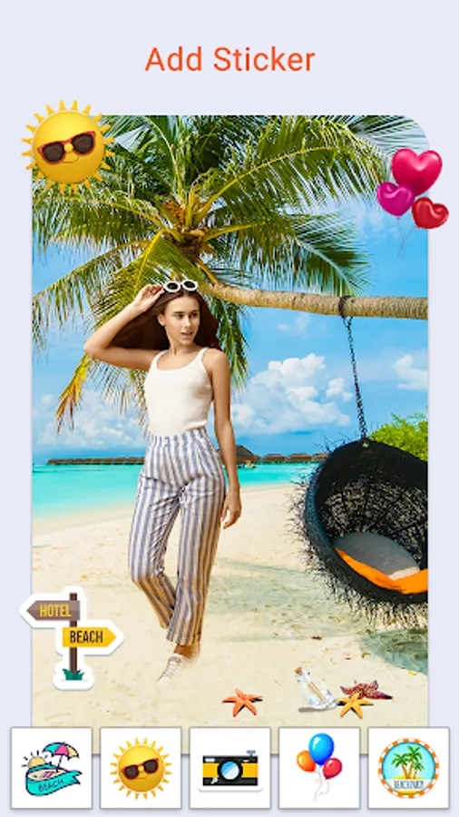 Beach Photo Background editor application gives a wide range of realistic and beautiful beach backgrounds, stickers, and frames related to beaches. You can also add stylish text with font colors on the photo.