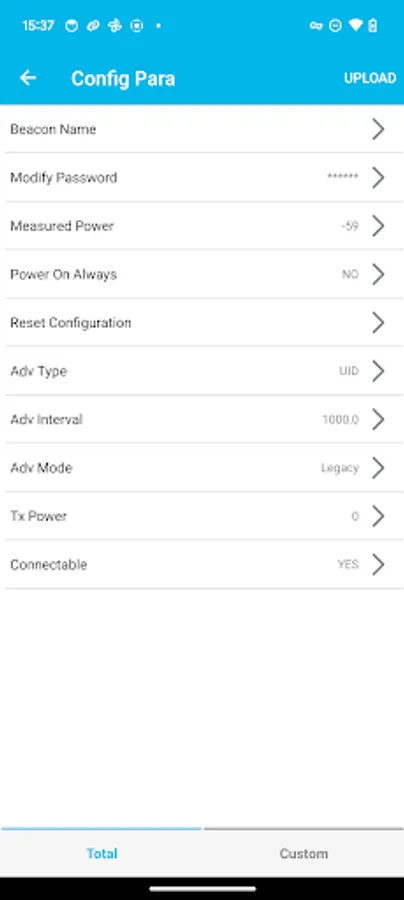 For the configured parameters, such as setting the transmit power of all beacons to 4dBm, you can set them through the app's UI or manually edit the JSON configuration script.