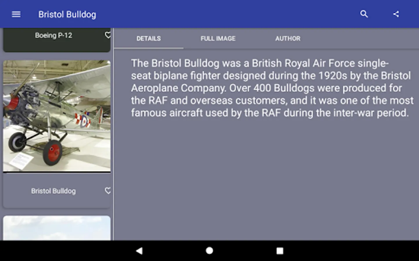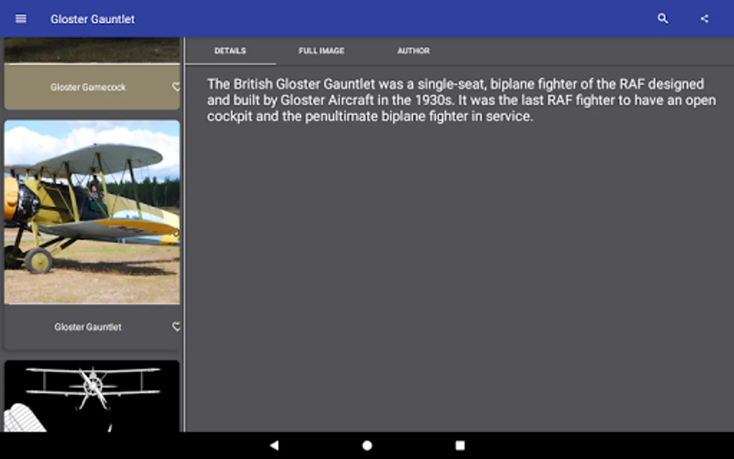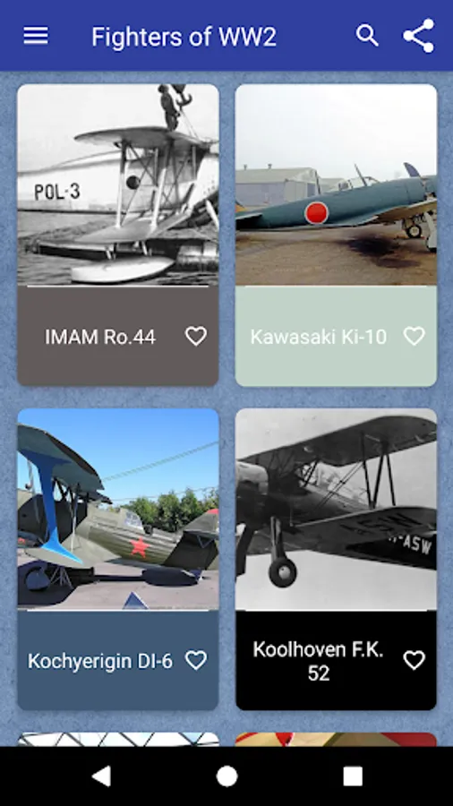 Full app with Fighters of WW2 with complete description and full image that can be used as wallpaper.