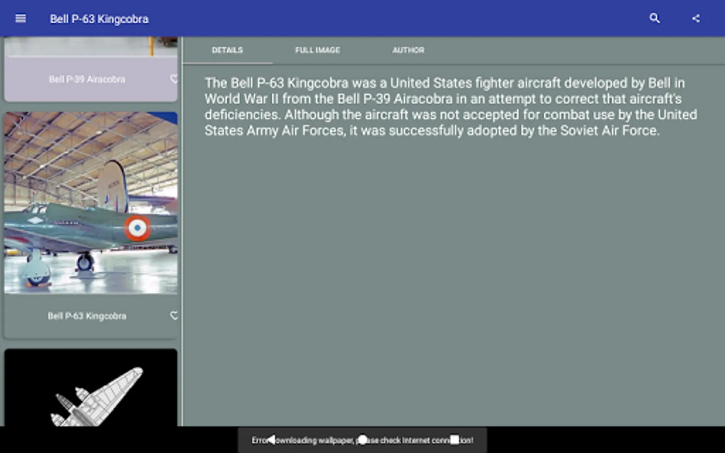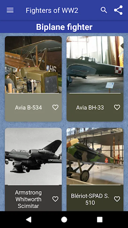 Full app with Fighters of WW2 with complete description and full image that can be used as wallpaper.