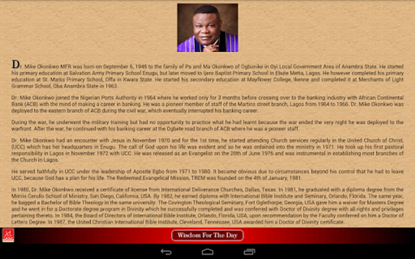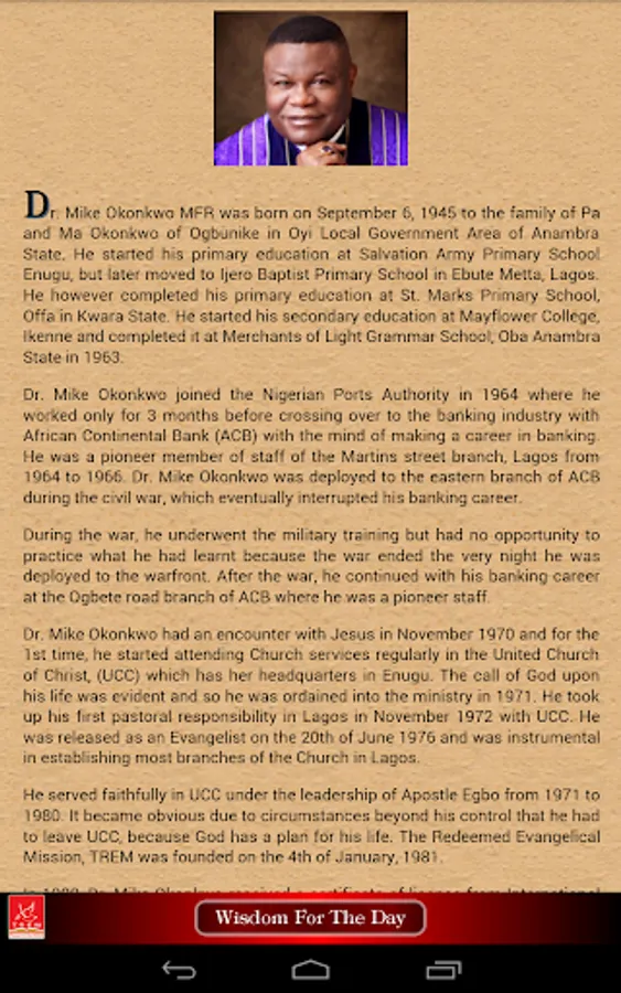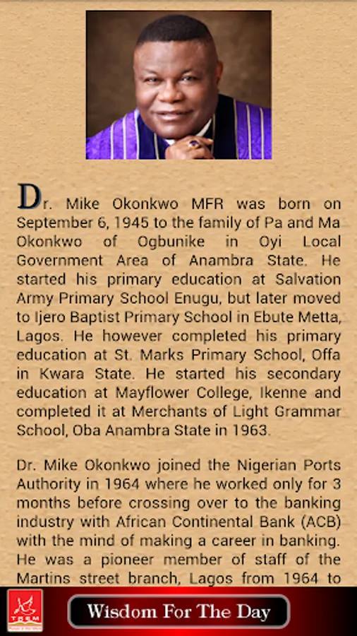 Wisdom for the Day is an inspirational daily devotional from the Presiding Bishop of TREM Worldwide, Dr Mike Okonkwo.