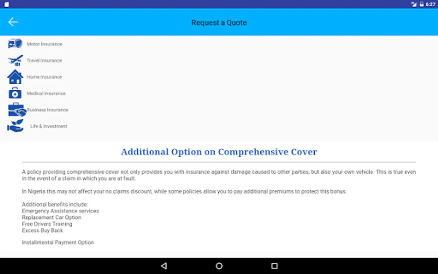 This service is powered by FLOODGATE INSURANCE BROKERS, a registered and licensed insurance broker in Nigeria