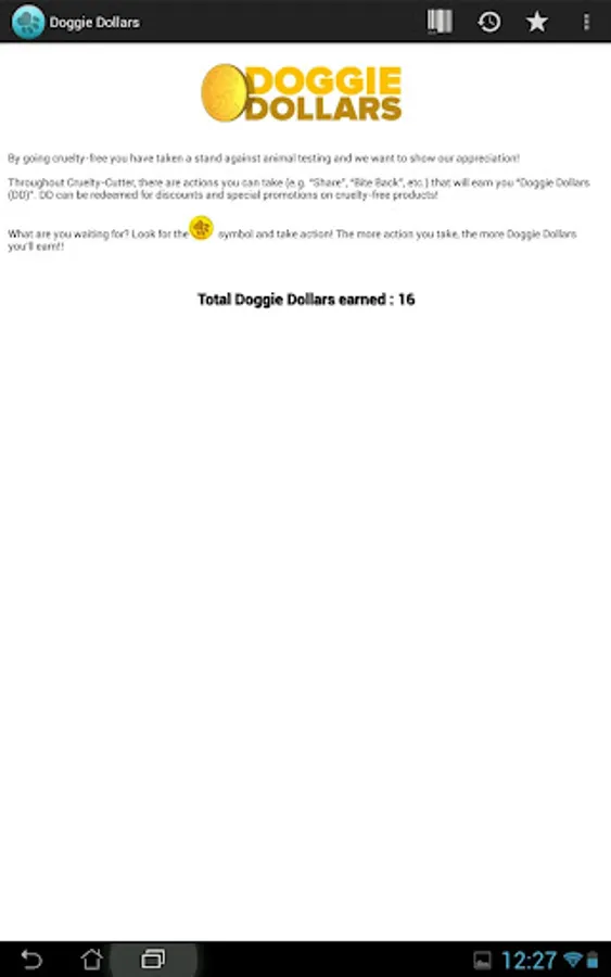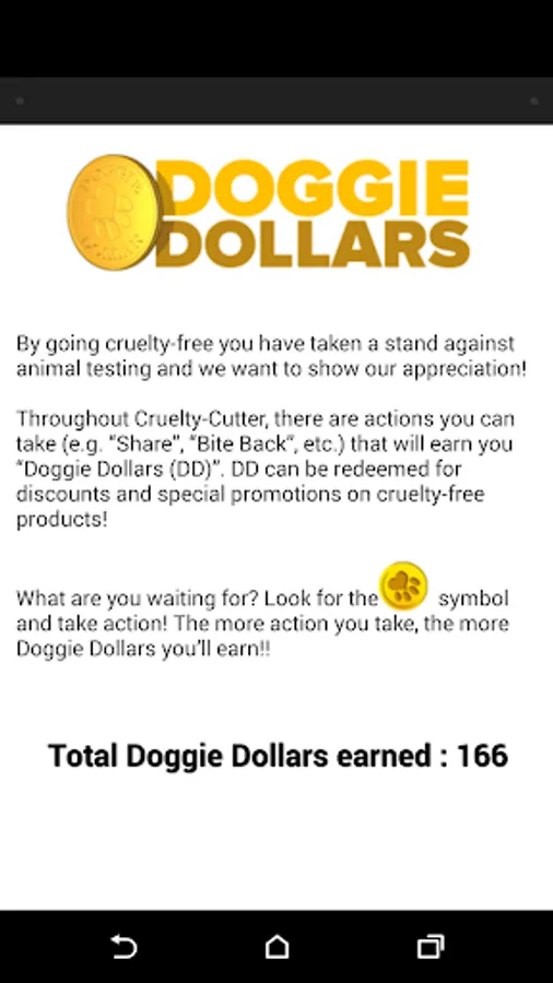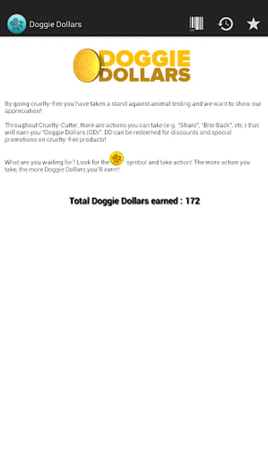 -- Redeem Doggie Dollars for deals on cruelty-free products.