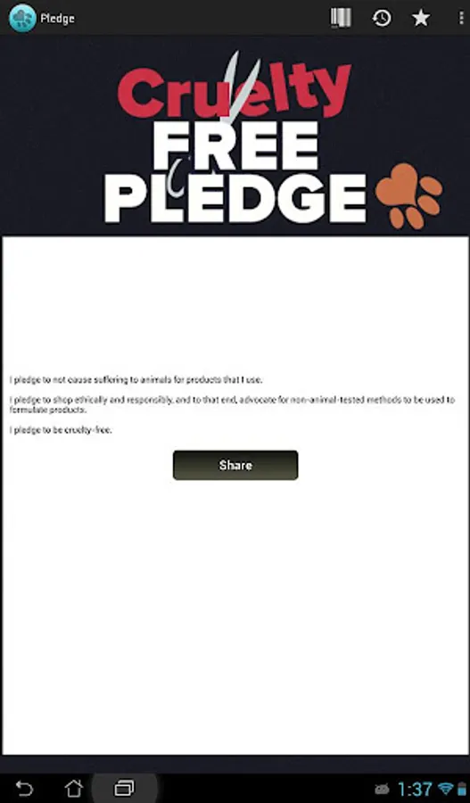 Cruelty-Cutter is your activist app! Share your results with friends on social media and also share your concern or praise with the company itself. Companies that still choose to test on animals will get the message that Cruelty-Cutter users are against what they are doing! The more shares, the more “Doggie Dollars” you earn towards coupons for cruelty-free items!