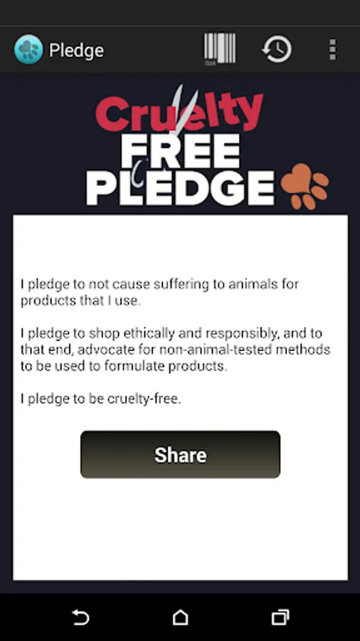 -- Scan product barcodes and instantly learn if the product is cruelty-free!!