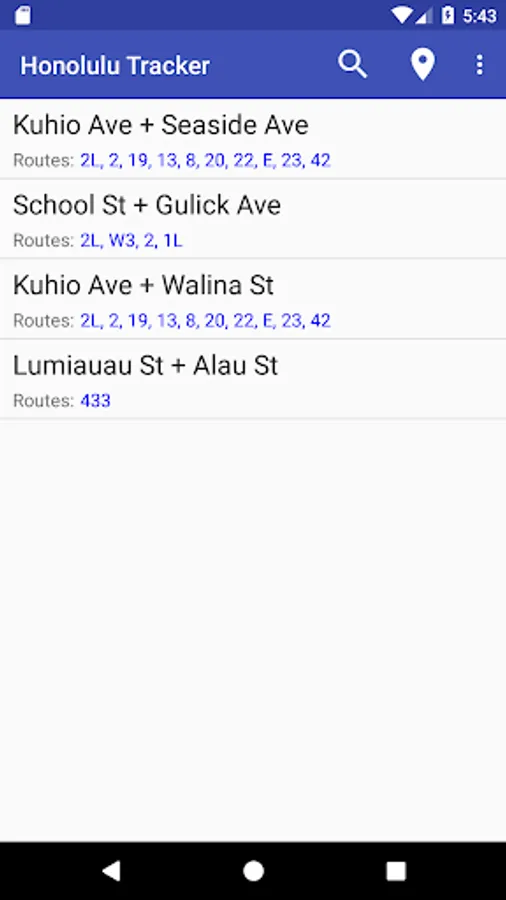 Honolulu Transit Tracker is a simple tool for TheBus riders on Oahu, Hawaii. Quickly find nearby stops using your location, save stops you frequent.
