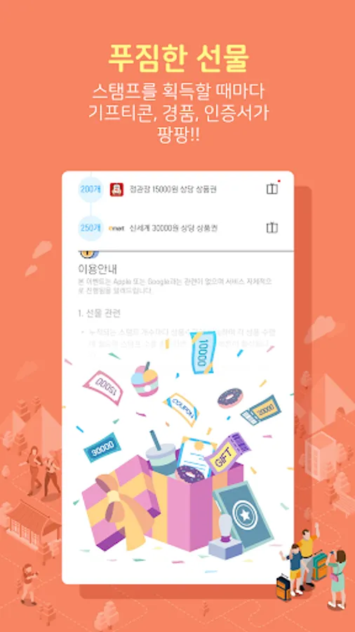 After installing the All That Stamp App and obtaining a stamp, mobile gift certificates, souvenirs, certificates, etc. that can be received appear in the 'Gifts' tab of the app.