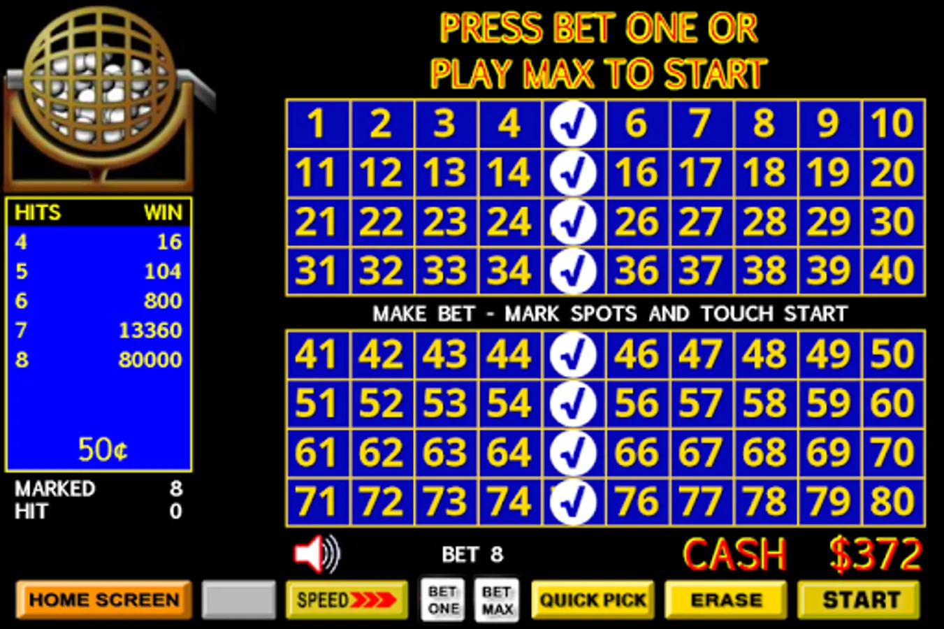 Our realistic Vegas Casino version includes multi denomination play where you choose the amount per credit from 1¢, 2¢, 5¢, 10¢, 25¢, 50¢ and $1. Plus innovative swipe so you can mark multiple keno numbers at once.14 games before pop-up ad.