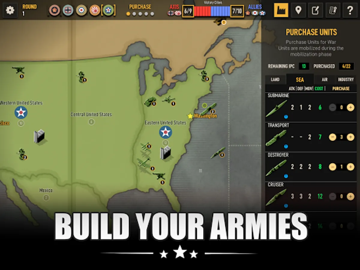 Victory goes to the side that conquers its opponents on the field of battle and occupies the greatest cities of the world. Will the Axis continue to spread across the globe unchecked, or will the Allies rally to push back against imperialistic tyranny? Challenge your friends and change the course of history!
