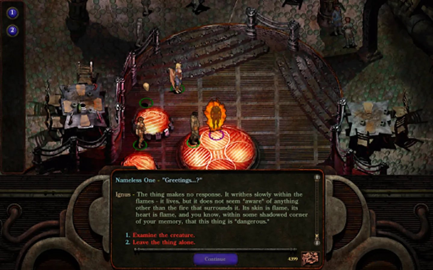 6. New Tablet Interface, Same Planescape Feel: Planescape: Torment: Enhanced Edition has been designed with tablets in mind. Open and close side menus with a touch, select dialog options with handy conversation buttons, and make tactical decisions with a brand-new action indicator.