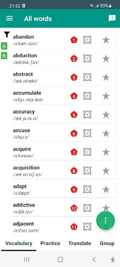 Noticeable features: ✓ Mini multiple languages dictionary ✓ Filter word list by many conditions(studied, mark, phrase, suffix) ✓ Many practice types(quiz, write, puzzle, arrange, same mean) ✓ Remind every day ✓ Learn word quickly by using Widget at home screen ✓ Check grammar online free ✓ Practice history help user review later