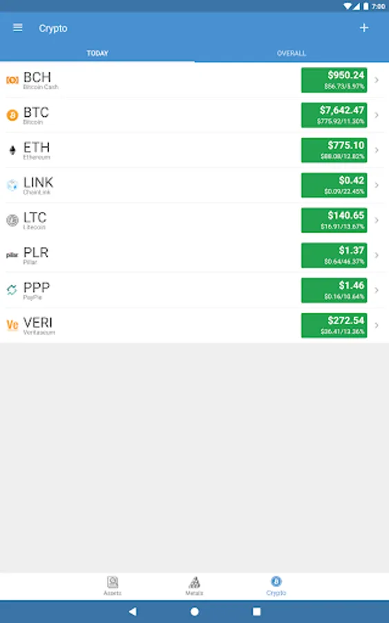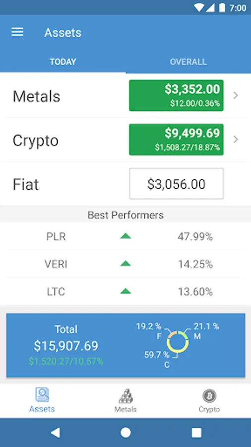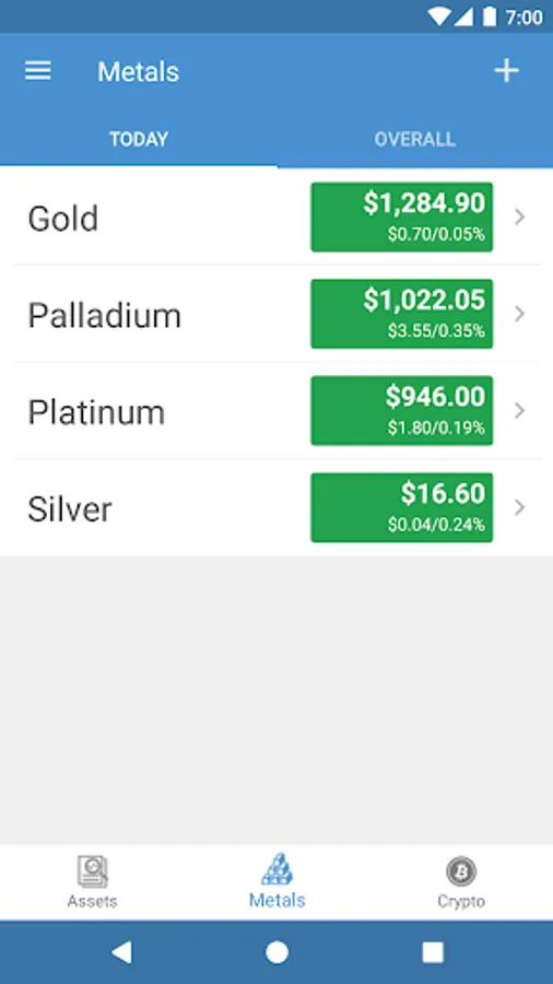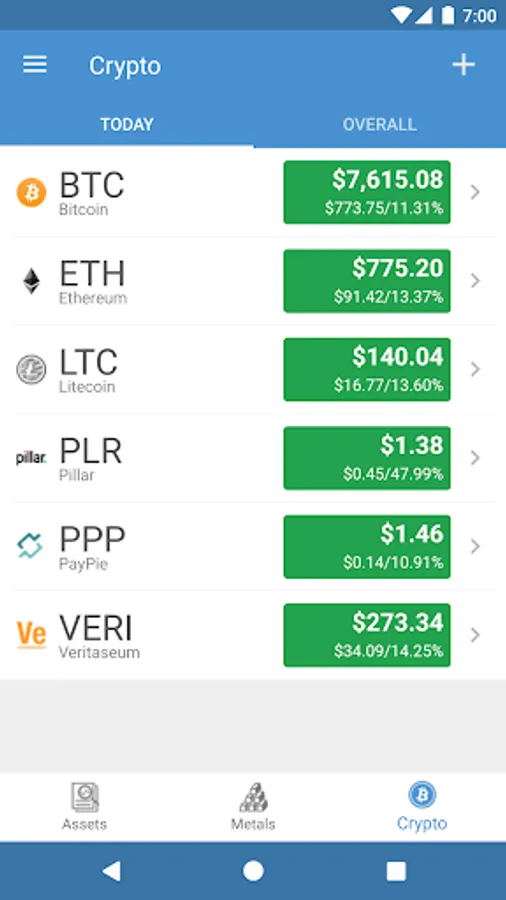 Alt(ernative)folio is the perfect tool to have instant access to your net worth across alternative investments like precious metals and crypto currencies! Track your gains/losses with the transaction management features! If you have no historical record of your purchases, no problem! Just specify the quantity of the asset and Altfolio will even let you track transactions from that point forward.