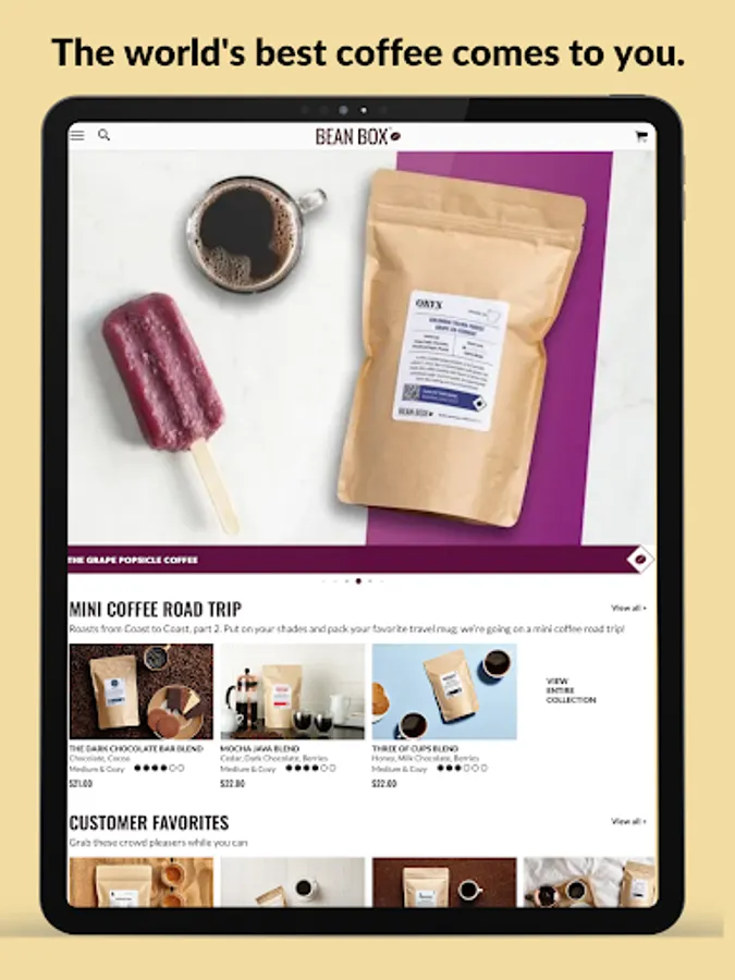 Bean Box is the #1 specialty coffee delivery app. No matter where you live, we bring the world’s best specialty coffee to you. Choose coffees from 50+ award-winning roasters across the U.S., curated by a world-class expert, to elevate your morning routine. Discover new and exciting small-batch coffees with every delivery, all shipped fresh for a superior morning cup.