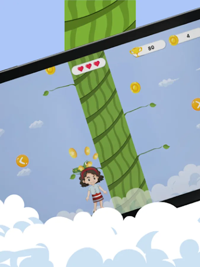 The user will be able to increase his awareness and speed of intuition, as well as increase his concentration in order to collect the largest number of coins by climbing the pea tree and insisting not to fall from the trunks of the tree