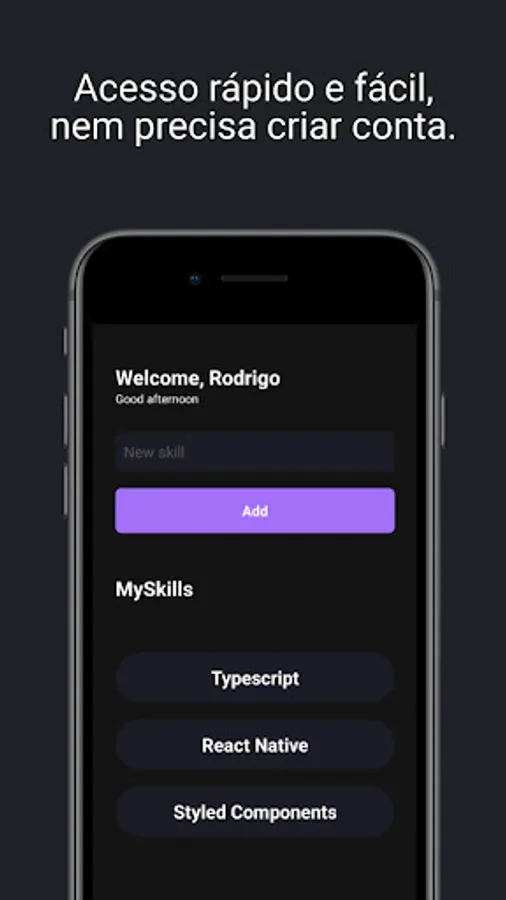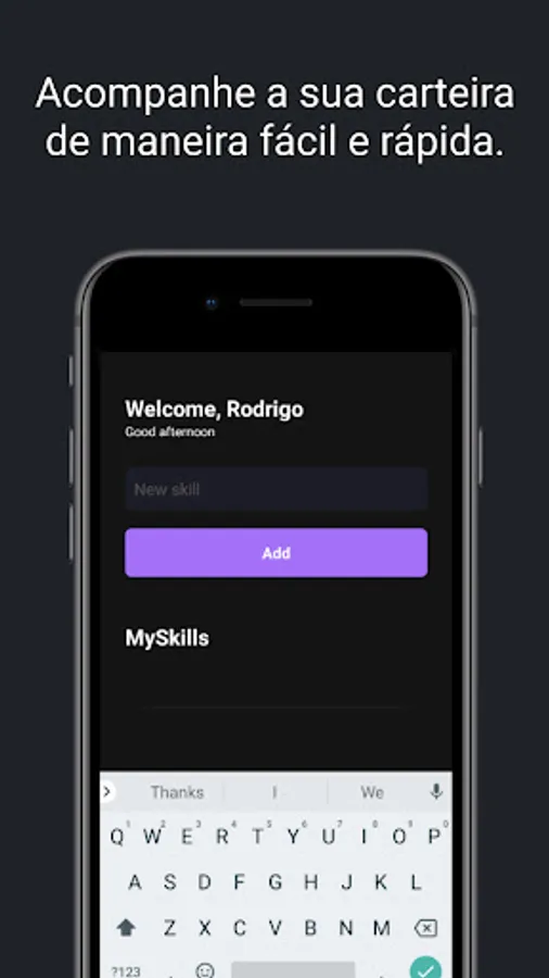 In this App you can register the skills you have to help you map all your knowledge. In the future, we will implement graphics in this amazing application to show how much you perform in certain areas of knowledge.