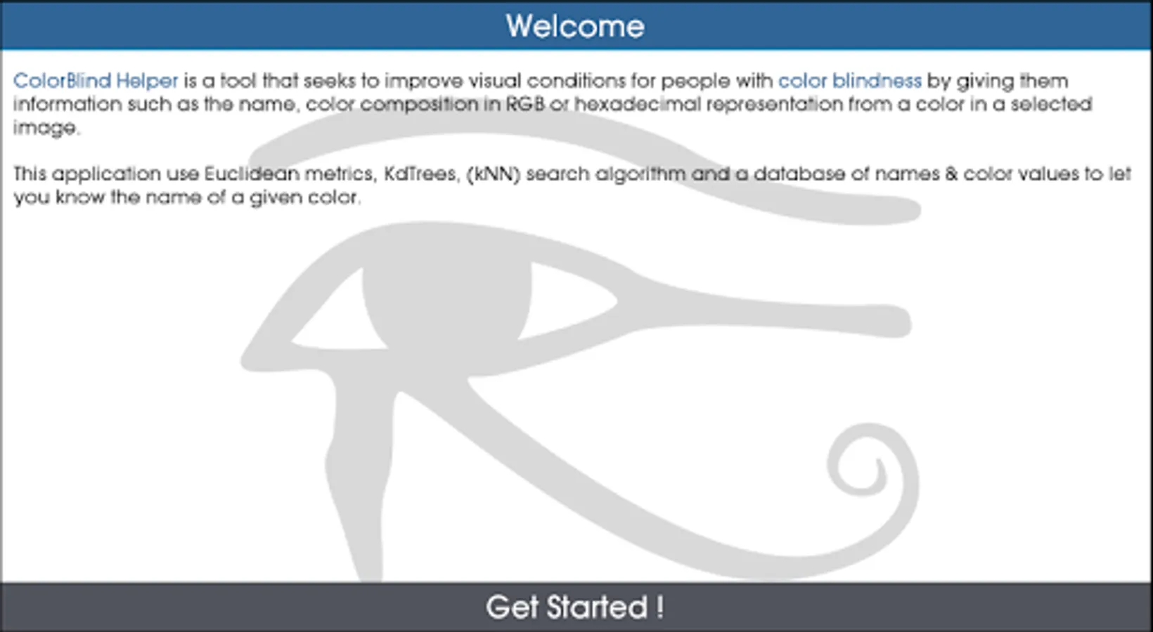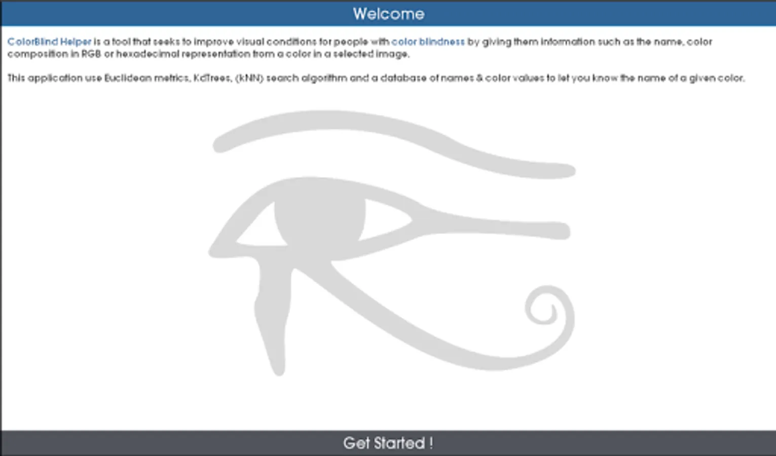 Any user can use this tool as a Color Picker to know the name of any color, but it has been designed to improve the visual accuracy of people with Color Blindness by giving them information such as the name, Color Composition in RGB or hexadecimal representation from a pixel in a selected image.