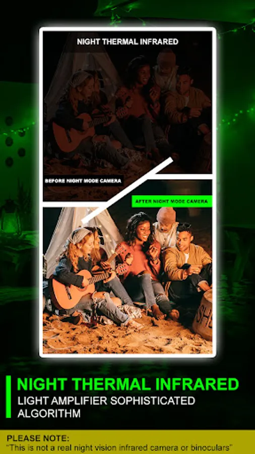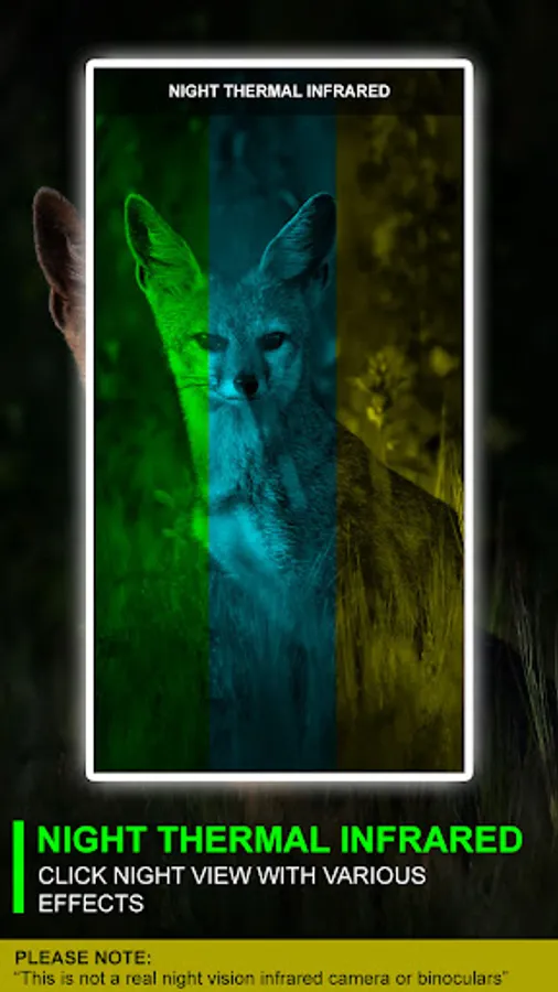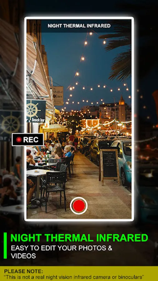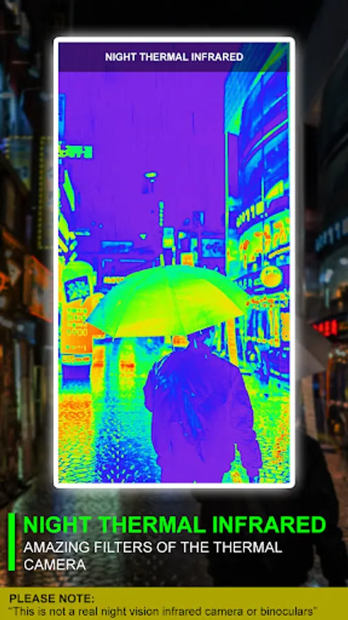 " Night Thermal Infrared Effects " is designed as a creative photo filter of a thermal camera. It's essential to understand that this app does not transform your phone into a genuine thermal device, nor can it measure the temperature of real-world objects.