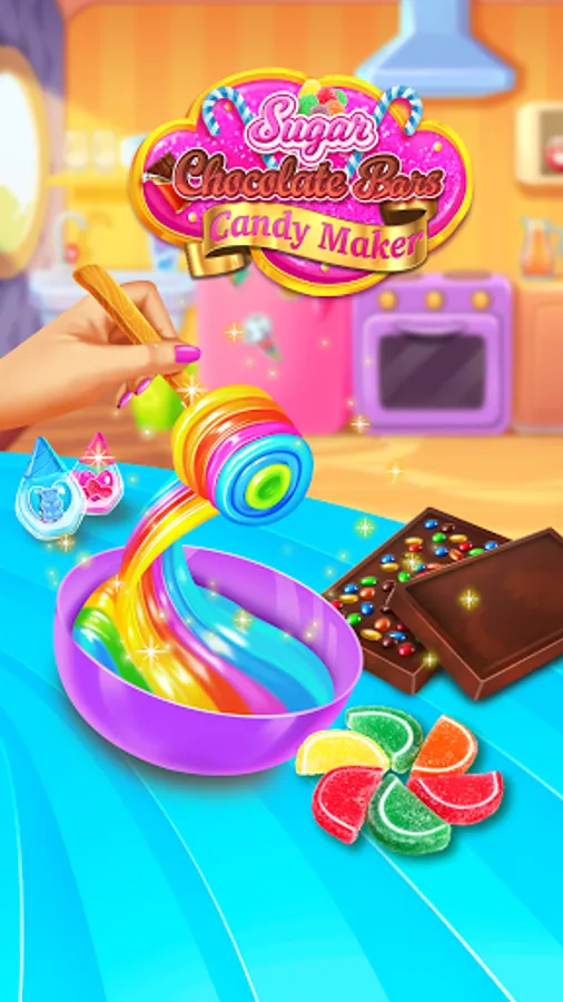 Sweet Rainbow Candy Cooking & Chocolate Bars Cooking Games is a fun game for Kids & Families who love cooking up Rainbow Candy & Chocolate Bars!