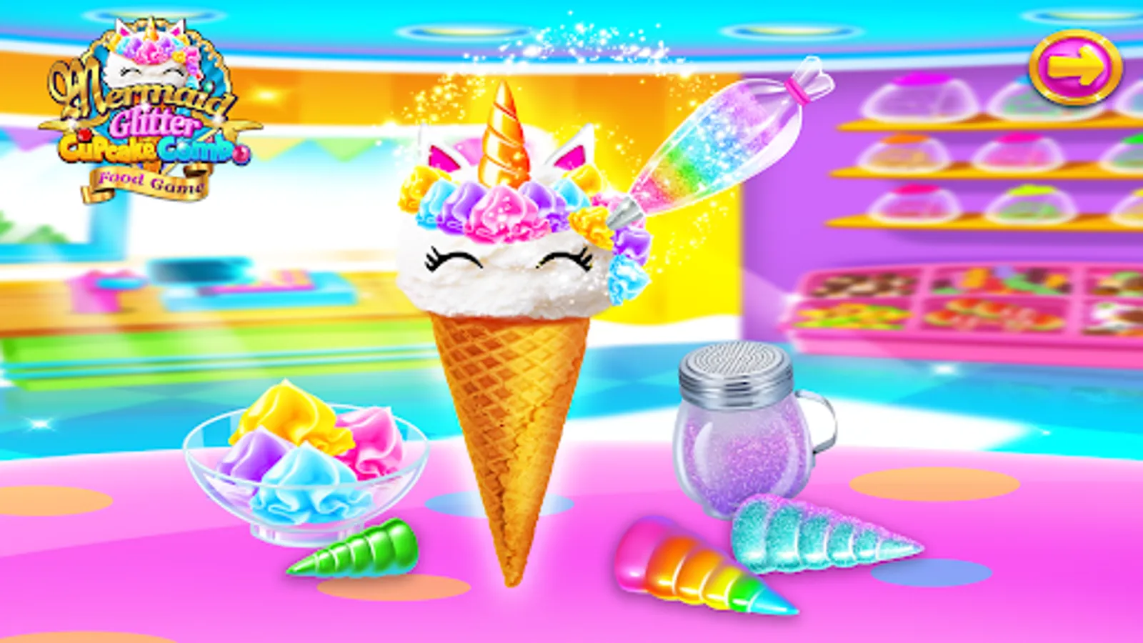 Then you will love Mermaid Glitter Cupcake Chef - Ice Cream Cone Cupcake Bakery Food Games and food making games for girls!