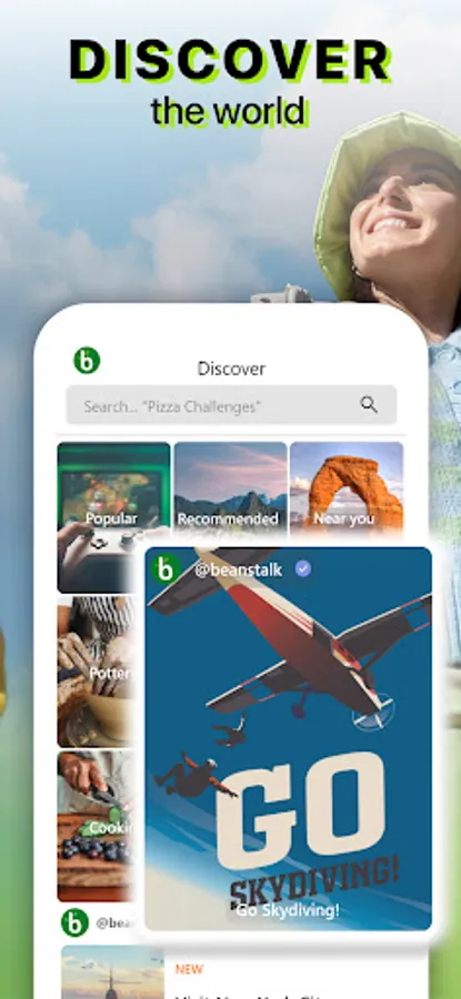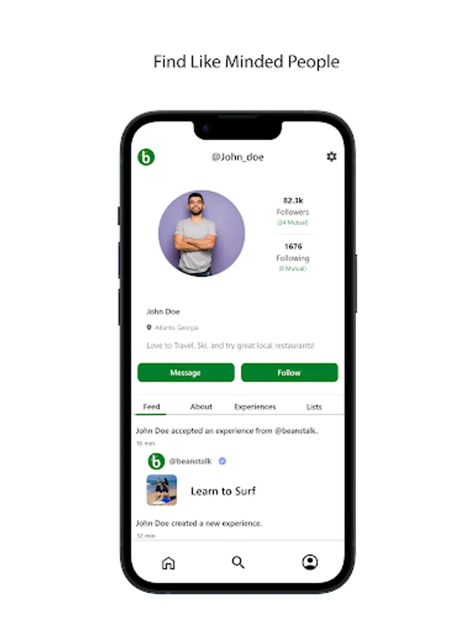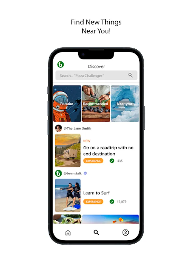 Explore all of the amazing experiences that life has to offer! Beanstalk has hundreds of thousands of experiences and bucket lists already pre-populated from day one. You are able to explore something specific, or just explore at random and discover all of the cool and unique things that Beanstalk has to offer.