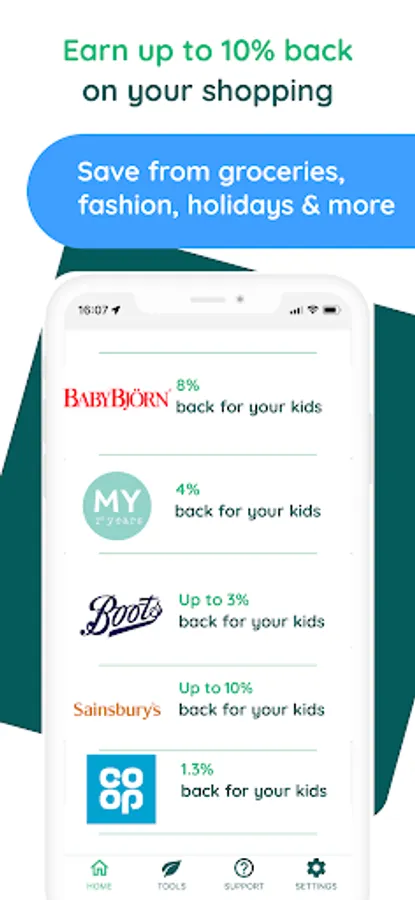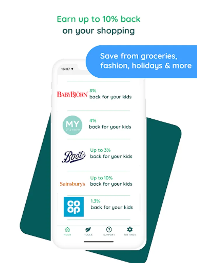 Earn savings for your children by shopping at over 2,000 retailers such as John Lewis and Tesco. Free money back on your shopping goes straight into your children’s savings accounts.