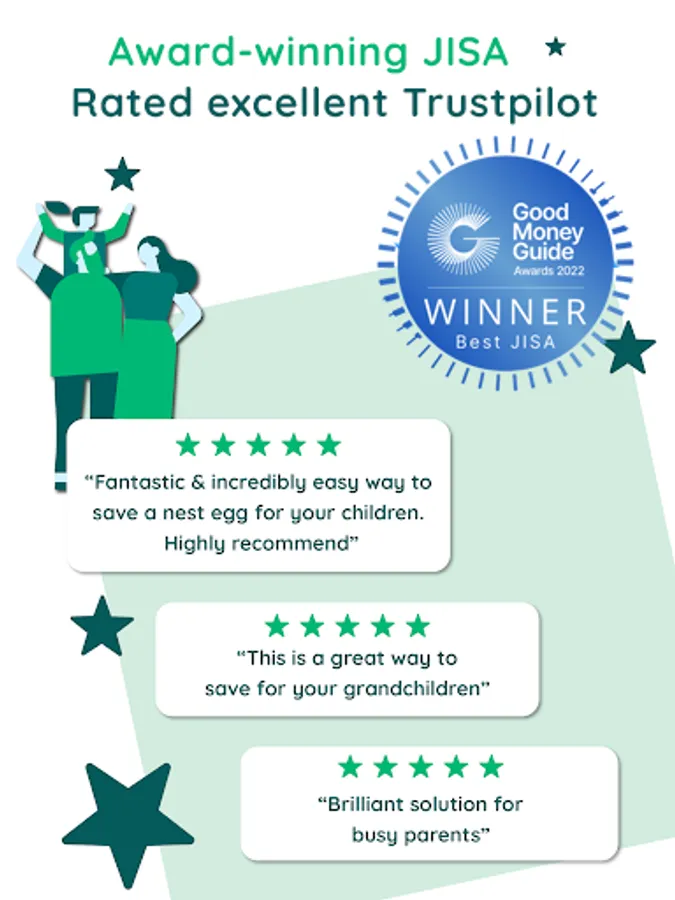Please note: the value of investments can go up and down so you could end up with less than you invested. Investments should be regarded as longer term ie: 5 years or more. Tax treatment of JISA/ISAs depends on your individual circumstances and may change in the future. A Junior ISA cannot be accessed until the child is 18 years old. Available to UK residents only.
