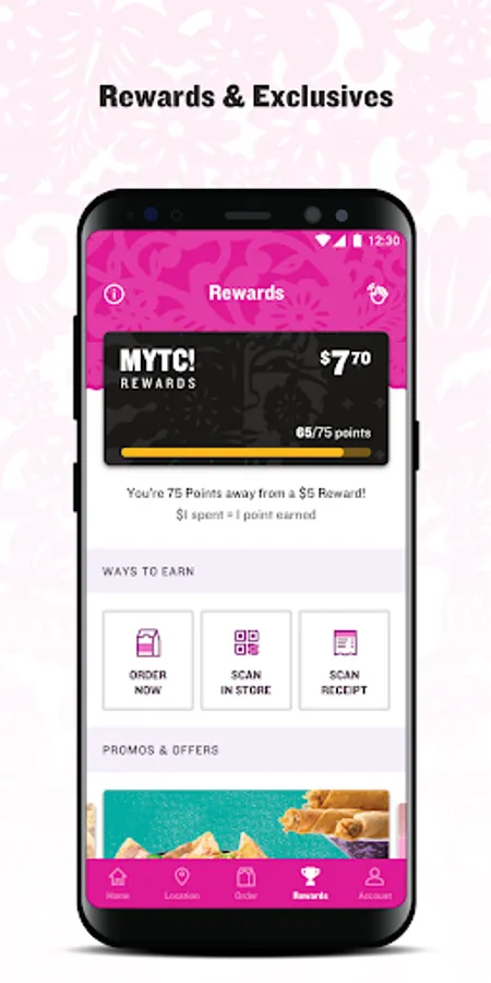 Download the Taco Cabana app to get more out of your Taco Cabana experience. Earn points for every $1 spent. Every 75 points gets you a $5 reward.