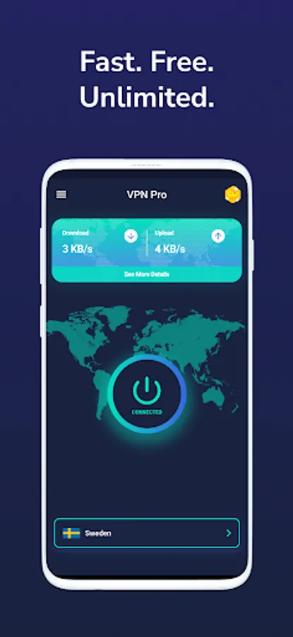 VPN Pro is 100% free, unlimited, secured and super easy to use. You can connect to any servers to enjoy unlimited online privacy and freedom.