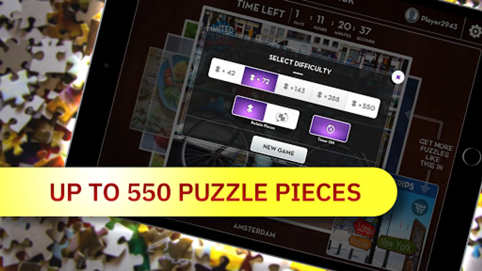 - Puzzle games for kids or puzzle games for adults? Choose the difficulty level, and enjoy! We have five difficulty levels (up to 550 puzzle pieces).