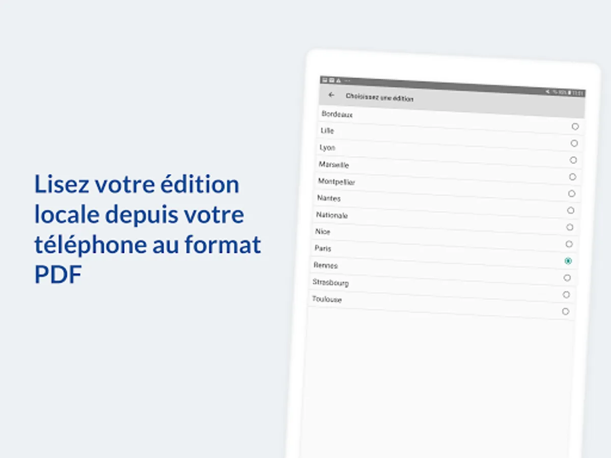 Within your press application "20 Minutes - Le journal", it is possible to choose your newspaper according to the city whose news you want to follow: