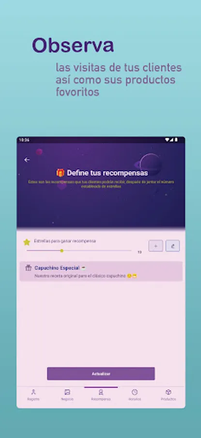 Reward the loyalty of your customers, scan their virtual QR card through the app and assign them stars, configure your logo, colors and products.