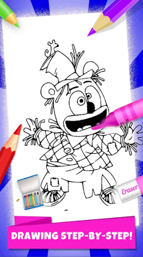 Bear Coloring to draw cartoon characters in a pieceof paper with pencils
