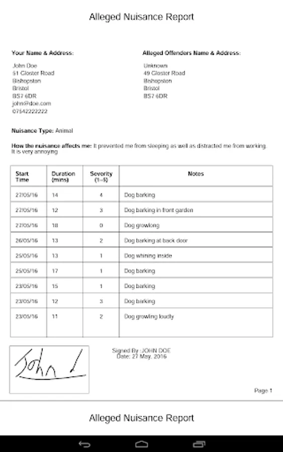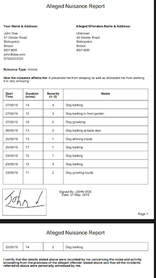 The App provides a convenient way to log the time and duration of each incident of a nuisance noise. You have the right to report persistent dog barking, loud music, loud machinery and any other noises that disturb your well being to your local council or housing association.