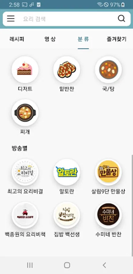 Try a delicious meal with various recipes such as Sumine's side dishes, Housebap Baek teacher, the best cooking secrets, Altoran, Salim 9 Dan Manmulsang, and Baek Jong-won's cooking secrets.