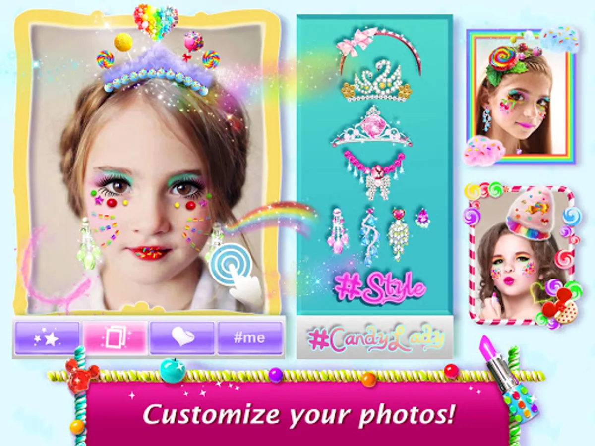 Added with sugar-coated photo frames, rainbow smokes, and jewelries, the photo decoration in this app will amaze you further away! With this app, you can make insanely cool selfies for your social network, holiday season greeting cards, materials for school projects or even simply just show your talent in fashion your parents!