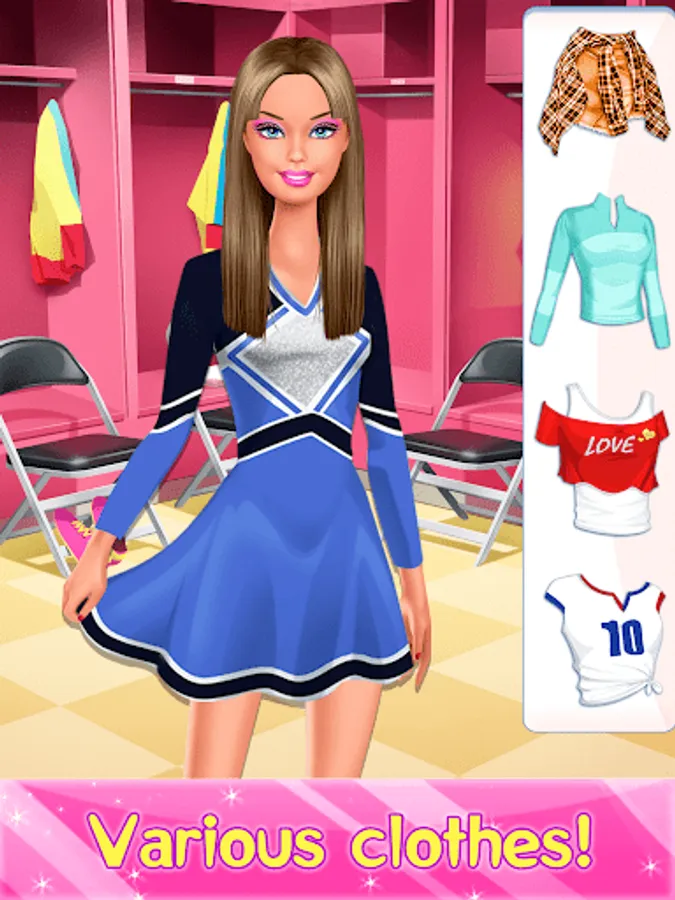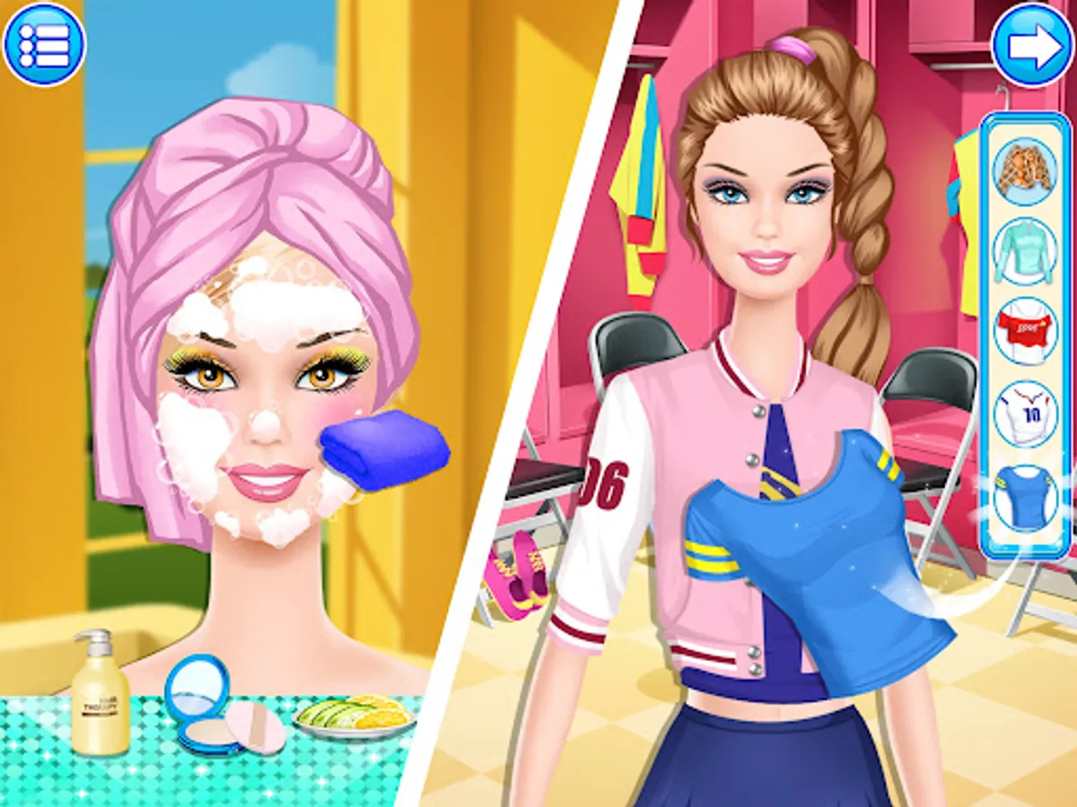 Sports day has arrived! Get these sporters ready for an active day! The latest sports styles and fashions are waiting for you in your brand new beauty salon. All you need to do is bring them in and let the dress up game begin. Style their hair, pick out a fun cheerleader dress, give them makeup and turn them loose for an exciting day!